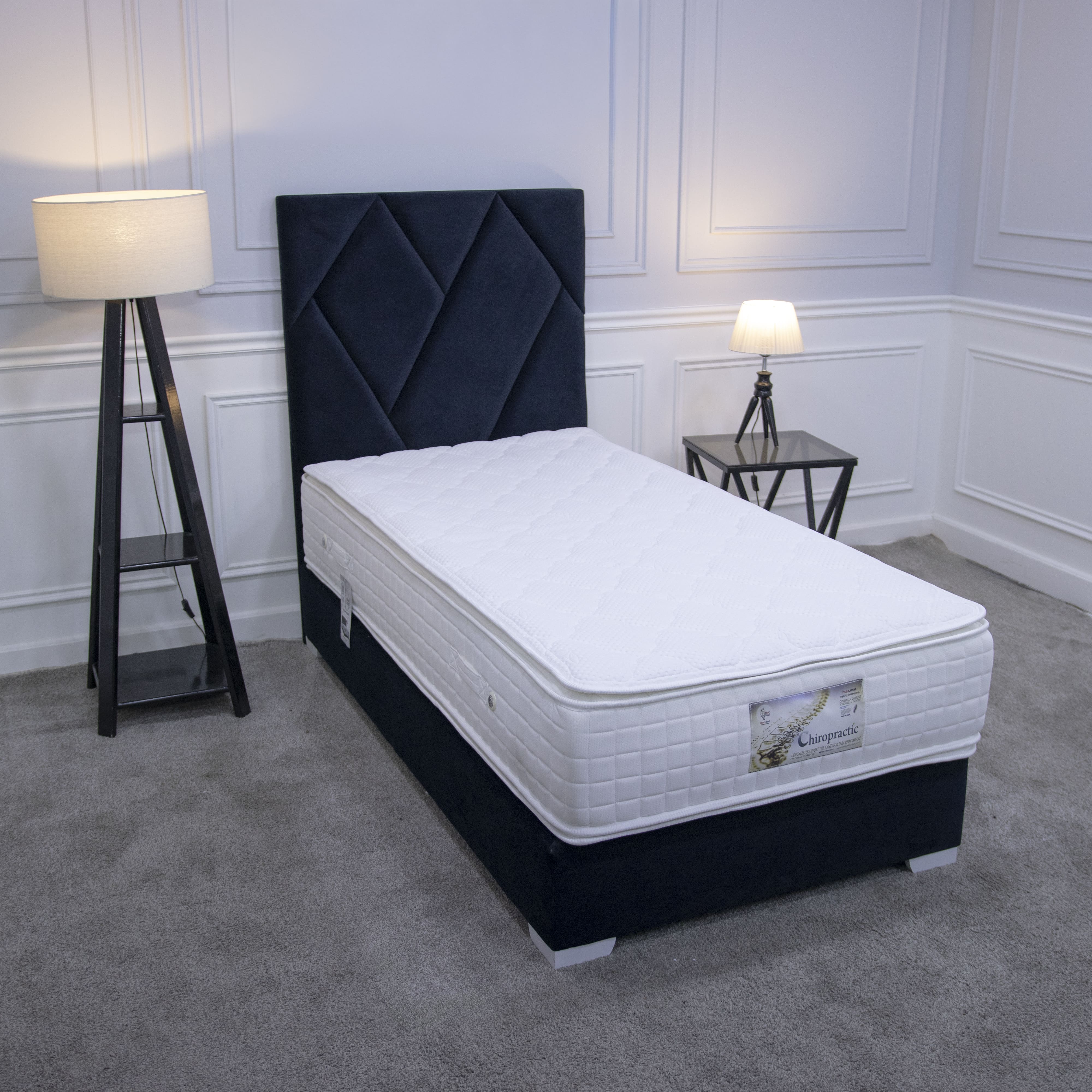 Includes: Single mattress and upholstered bed base.